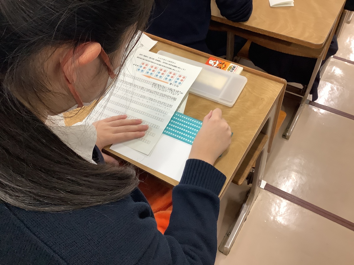 点字を打つのが初めての生徒がほとんどで、「結構むずかしい」「ひとつの文字を打つのが一苦労」「裏と表をまちがえて大変だった」などいろいろ感じられたようです。その感じた思いや気づきは、もしかしたら、皆さんへのクリスマス・プレゼントかもしれませんね。