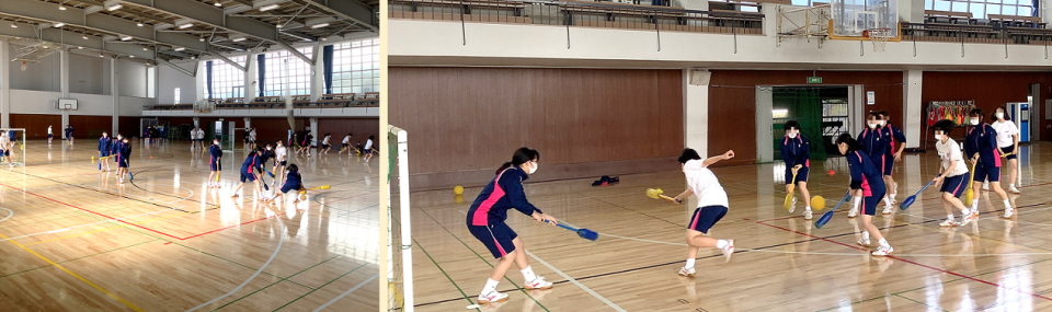 高3体育では、レクリエーションスポーツであるピロポロのゲームを楽しんでいます。8チームのリーグ戦を実施しており、白熱したゲームが展開されていて、受験勉強が忙しい時期だからこそ、仲間と楽しく身体を動かす喜びを感じている生徒も多いようです。