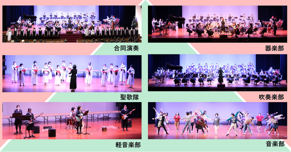 各クラブがそれぞれの持ち味を発揮し、豊かな音楽に彩られたひとときを分かち合うことができました。最後に上級生を中心とする合同演奏で学園歌「海のかなたのメッセージ」を披露し、マザー・マチルド来日150周年の節目の年をお祝いしました。