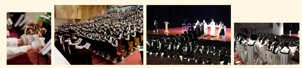 新入生を迎えての初めてのミサが全校で行われ、新入生全員が神父様による祝福をいただきました。今後の学園生活が恵みに満ちたものになるように、皆で祈りました。
