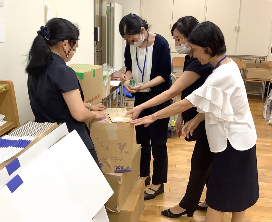 保護者の方々が来校されるのに合わせて、支援物資を提供いただきました。