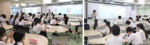 夏休み前の終業の日、卒業生で元高等裁判所の裁判官のお話「司法の世界への案内」を、中3から高2の希望者50人が伺いました。