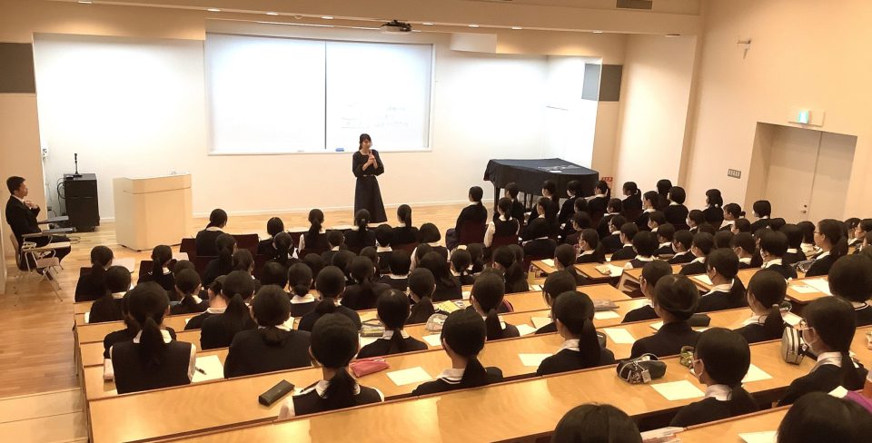 11月8日、卒業生でアナウンサーの渡辺真理さんが高3LHRで生徒との対話時間を持ってくださいました。渡辺さんは少し自己紹介と近況をお話しくださったあと、「何でも自由に」と質問を次々と受けてくださいました。
