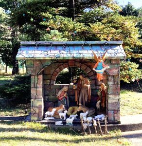街は早くもクリスマスらしい彩りですが、学校でも正門からの通学路に馬小屋が登場しました。この質素な馬小屋のように、私たちもクリスマスまで静かにその意味を考えながら過ごしたいです。