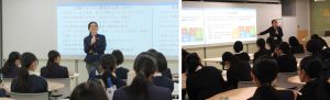 FAOの取り組みをはじめ、世界の食糧や農業問題の現状や、国連キャリアについてもご自身の体験を交えながらお話をしていただきました。日比さんのエネルギーとユーモアあふれるお話に生徒たちも引き込まれ、たくさんの質問にも丁寧に答えていただき、有意義な時間を共有できました。