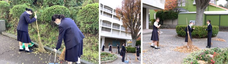 12月から、バレーボール部を中心に毎朝落ち葉掃きをしています。箒の使い方も上手になって、朝の短い時間に手早く落ち葉を掃き集められるようになってきました。