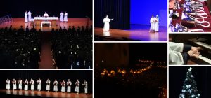 各学年のクリスマス奉仕活動の様子をスライドで分かち合い、その後のクリスマス聖劇では、演劇部と聖歌隊がオリジナルの脚本で演じました。ミサ後には、聖歌隊、音楽部、器楽部、吹奏楽部の合同でキャンドルサービスが行われ、美しい音楽と歌のハーモニーが奏でられる中で、静かな時間を過ごしました。