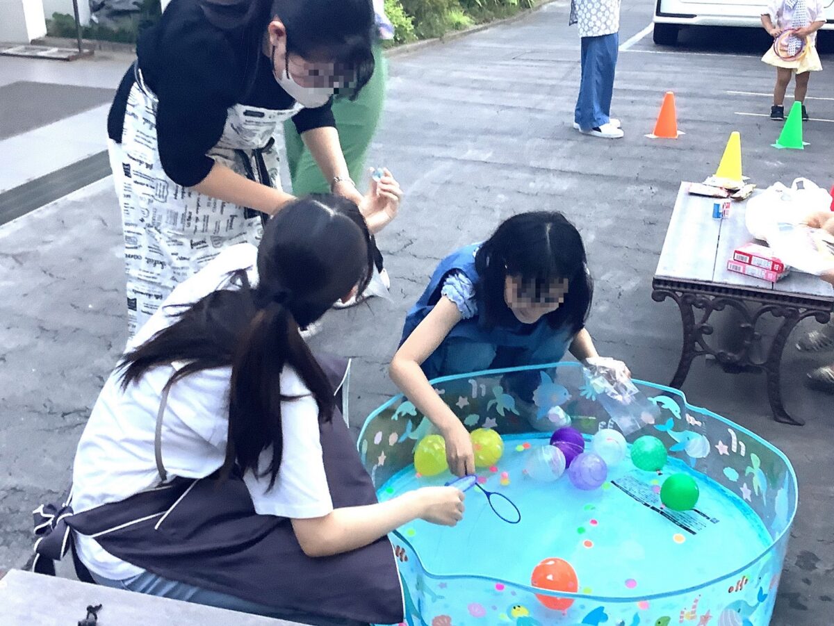 大船教会を会場とした子ども食堂のお手伝いでは、食事づくりのお手伝いのほか、一緒に縁日を楽しんだり遊び相手となって楽しく過ごしました。夏空に笑顔が広がる一日となりました。