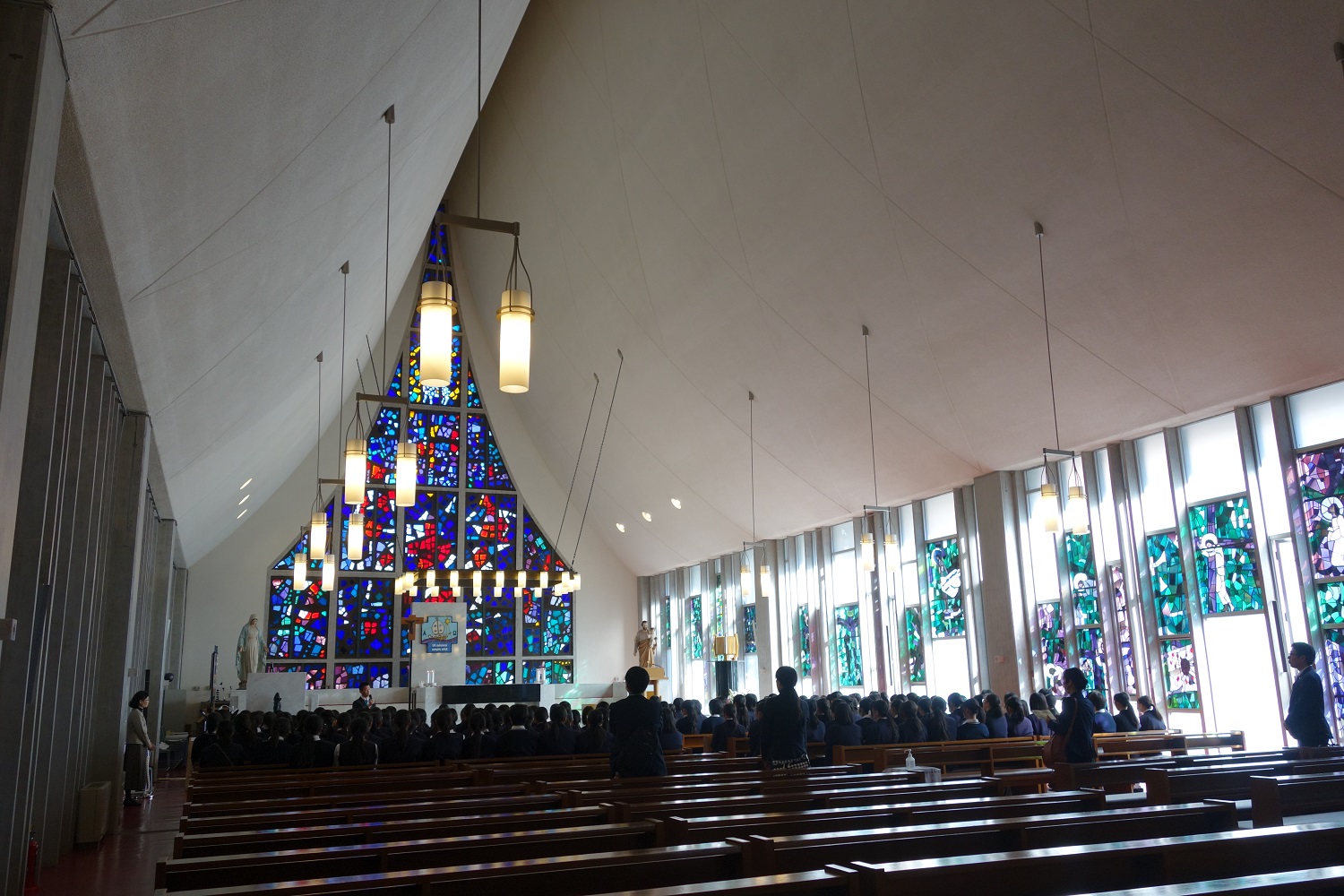 3日目のタクシー研修では、運転手さんの詳しい説明を伺いながら京都の街を巡り、班ごとに楽しい時間を過ごしました。最終日には立命館国際平和ミュージアム・カトリック河原町教会を訪れ、未来に向けて私たちに何ができるかを、一人ひとりがじっくり考える時間を得られました。