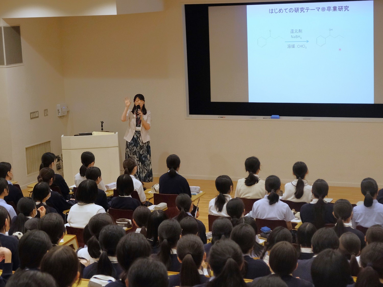 9月27日の高3総合的な探究の時間は、大学の理工学部で教鞭をとられている卒業生の講演でした。テーマは「推しを見つけて極める」。中高時代の経験や、進路選択、研究者としてのキャリアの変遷など、しなやかに選択を重ねている姿を自然体でお話しくださいました。それぞれの道へ向かって頑張っている生徒の背中を、力強く押してくださる時間となりました。