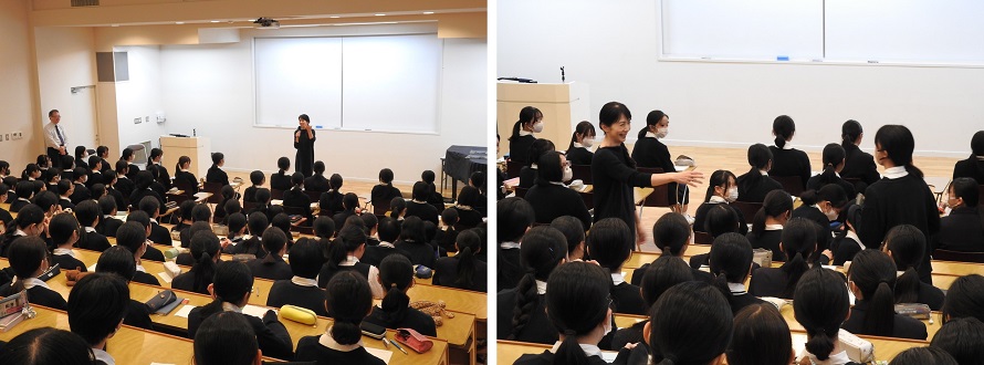 11月15日の総合的な探究の時間では、卒業生でアナウンサーの渡辺真理さんが、生徒との対話の時間を持ってくださいました。