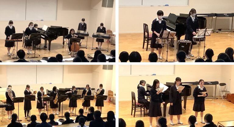 高1で音楽を選択する生徒たちが、2月14日、各自の“音楽”の発表会を実施しました。