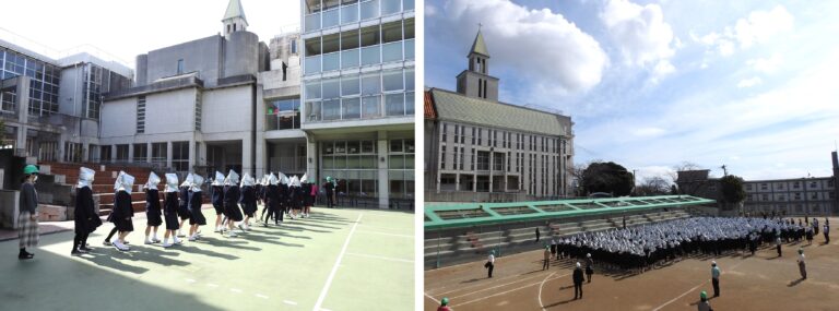 2月15日(木)、避難訓練を行いました。今回は震度7の地震と、それに伴う火災により放送機器が使えなくなった場合を想定して実施しました。通行できない箇所や避難経路の指示を本部から受けて、生徒たちは静かに、落ち着いて混乱なく移動を開始。全校生徒が迅速に避難しました。
