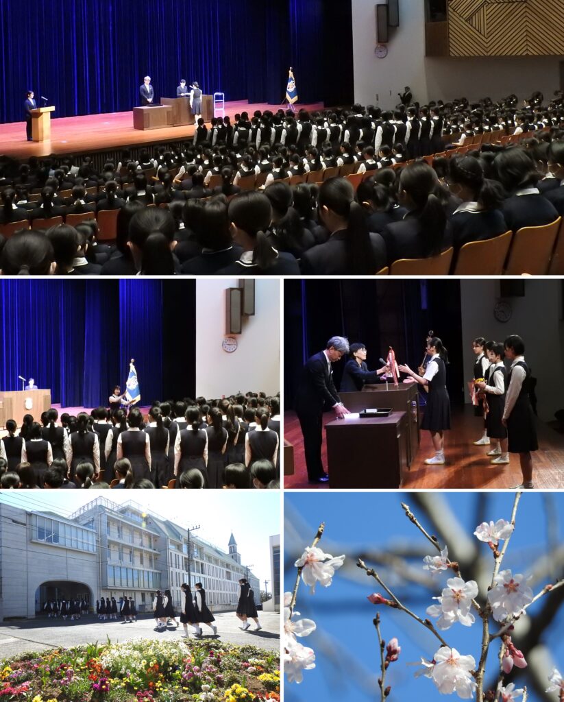 3月22日(金)、春の日差しが通学路の桜並木を穏やかに照らす中、中学校卒業式と、終業式が行われました。式の中では、中3の生徒(卒業生)がひとりずつ名前を呼ばれ、卒業生の歌う「感謝の歌」が講堂に美しく響きました。