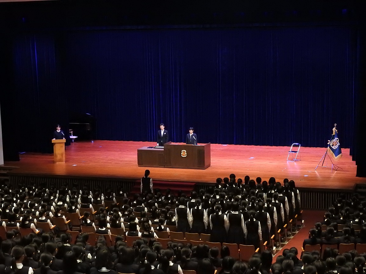 式では中3卒業生一人ひとりの名前が呼ばれ、代表が卒業証書を授与されました。中3の生徒たちは行事や授業の中で自分たちが得てきたものを噛みしめながら式に臨み、全員で「感謝の歌」を歌って、中学校生活に別れを告げました。高校でもそれぞれの個性の花を咲かせながら、輝いていきますように。