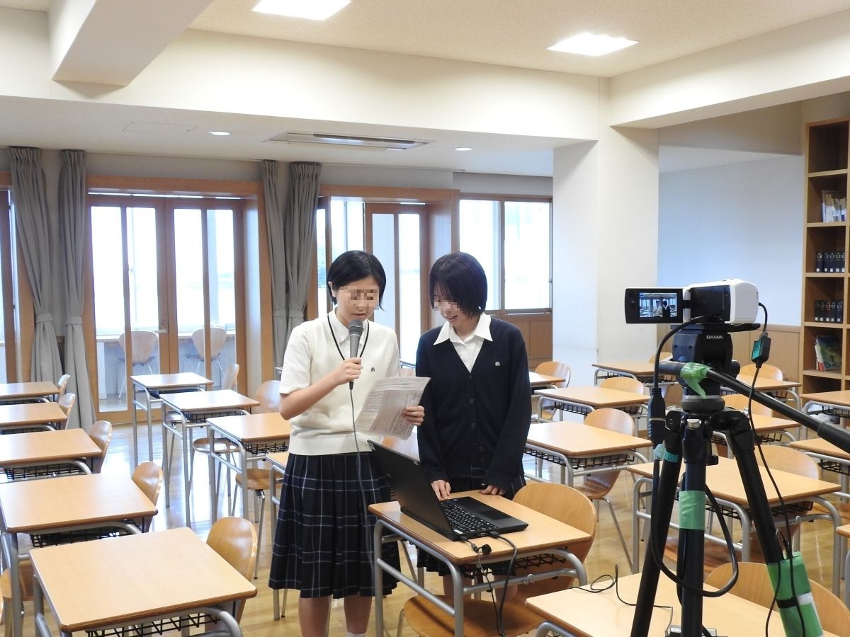 10月7日(火)、前期生徒会が映像朝礼で、任期の終了に伴う前期の活動報告を行いました。