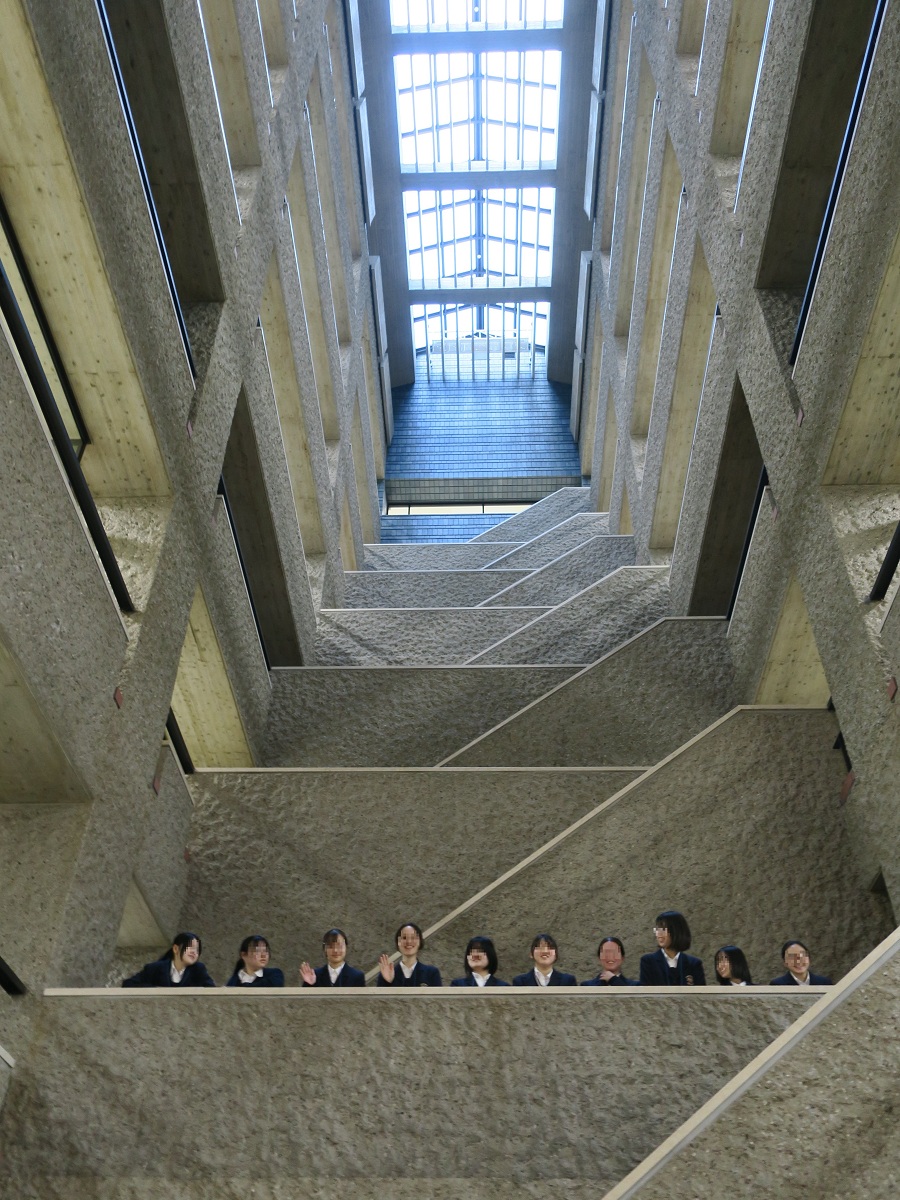 最初に職員の方から図書館についてのレクチャーを受けた後、一般の人は入ることができない新館の書庫へ。地下8階まである書庫に設けられた光庭(ひかりにわ)で記念撮影。どこまでも続く書架は圧巻でした。